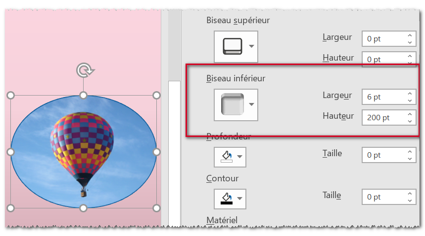 J'applique un format 3D "Biseau inférieur" à une forme et pourtant il ne se passe rien