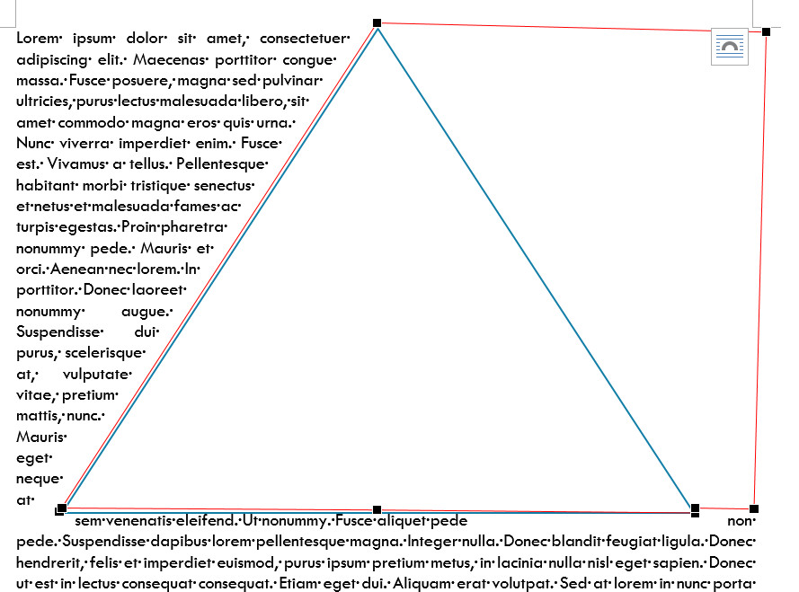 Et enfin dans cet exemple nous avons repoussé un point d'habillage vers la gauche, et le point d'habillege du bas vers le haut, à la pointe du triangle. Et on peut constater que le texte est bien rentré dans le triangle.