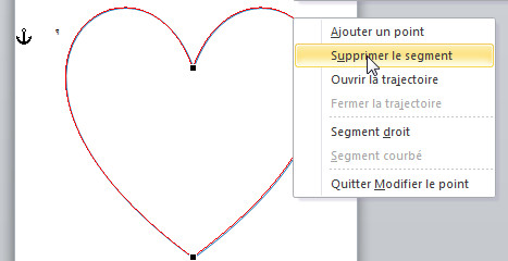 - Cliquez avec le bouton droit sur la bordure de la partie droite du cœur , et choisissez Supprimer le segment
