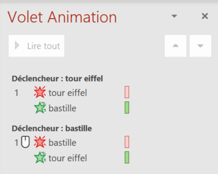 - Sélectionnez l'animation d'apparition de l'image B, cliquer sur Déclencheur (groupe Animation avancée) et choisissez "Sur un clic de Image A".