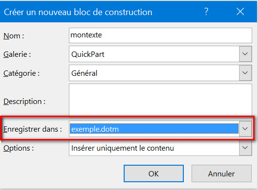 - Remplacez le nom du bloc de construction "montexte" par le vôtre.