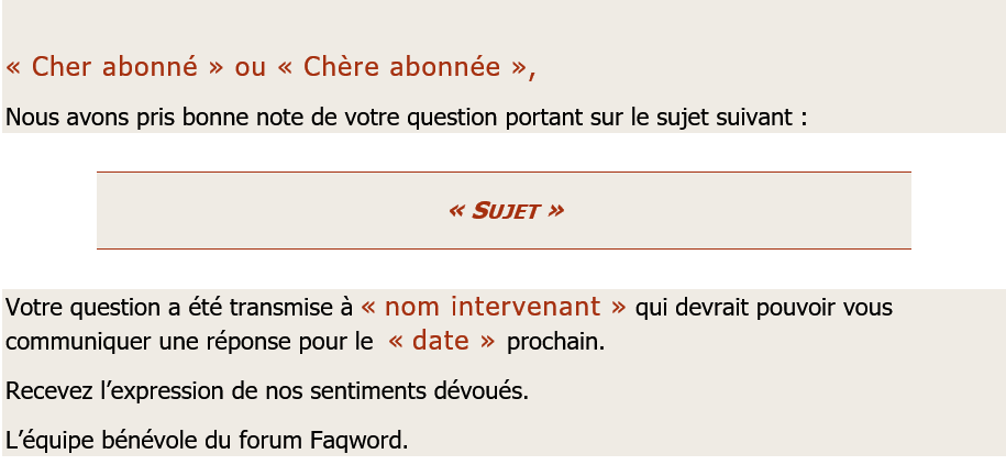 MsgBox "Il manque la question !", vbExclamation, "Erreur"
