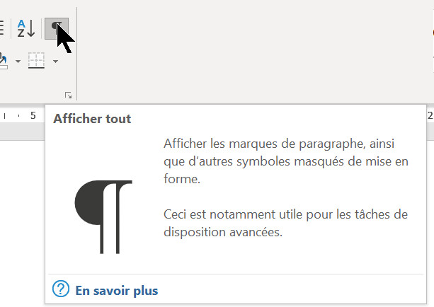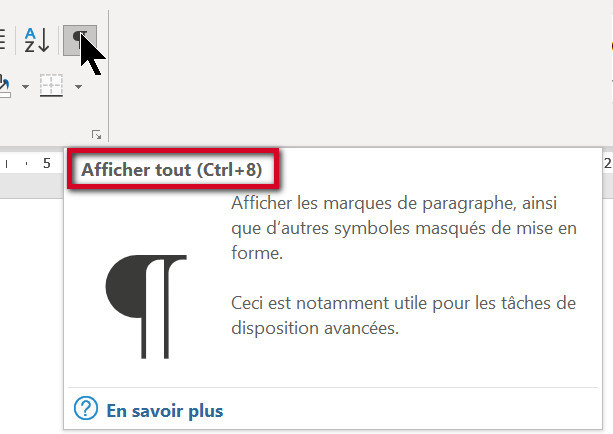Depuis la version 2007, il est pratique de pointer la souris sur une commande du ruban ou de la barre d'outils Accès rapide afin d'obtenir l'indication sur cette commande ainsi que le raccourci clavier pour y accéder.