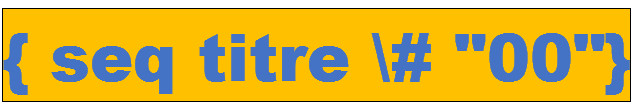 • Insérez le champ SEQ avec son identificateur, ici "titre", et ajoutez le commutateur \#  "00" pour appliquer le format.