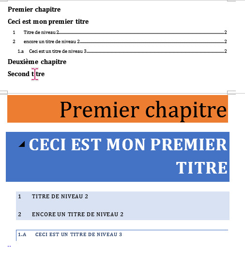 • Insérez un titre avec les deux styles comme expliqué ci-dessus.