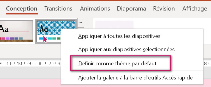 Et s'il vous vient à l'idée de changer le thème par défaut de vos présentations PowerPoint (un clic droit sur le thème le permet aisément), cela n'affectera pas votre Normal.dotm.