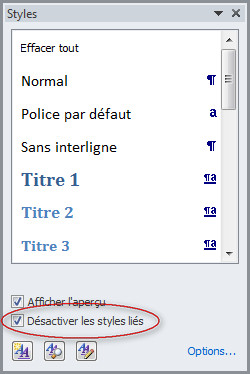 NB : Jusqu'à la version 2003, les styles liés n'existaient pas en tant que tels : ils s'appelaient bien "style de paragraphe"'. Néanmoins, ils se comportaient comme des styles liés.