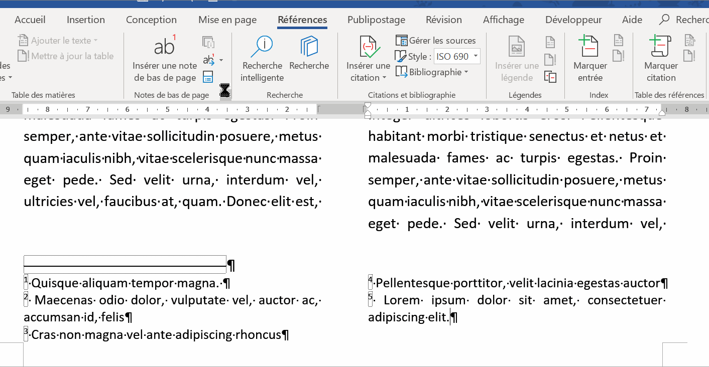 - Entrez au moins une note de bas de page, comme vous le faites habituellement.