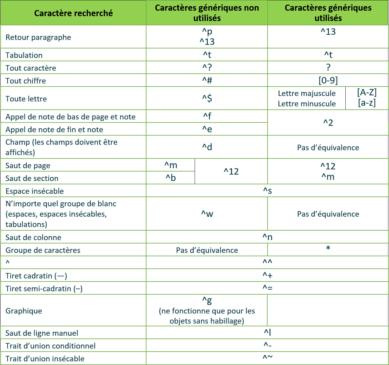En règle générale, caractères génériques ou non, les caractères ASCII se recherchent par ^nnn et les caractères ANSI par ^0nnn