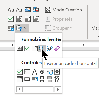Toutefois, vous pouvez toujours non pas convertir mais insérer une zone de texte via les outils de formulaire hérités : Onglet Développeur, groupe Contrôles, bouton Outils hérités, rubrique Formulaires hérités => Insérer un cadre horizontal.
