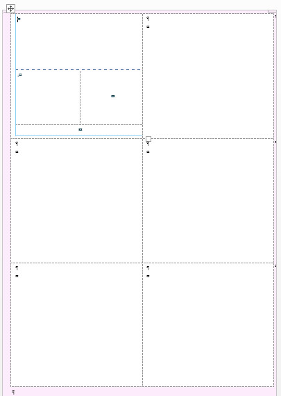 Cette étiquette est un tableau. Votre document de publipostage étant déjà composé d'un tableau, vous allez donc insérer le tableau étiquette dans la première cellule du tableau basique de publipostage étiquette. Cliquez à l'intérieur de la première cellule, puis insérez normalement le tableau de votre choix, de façon à obtenir quelque chose comme ceci :