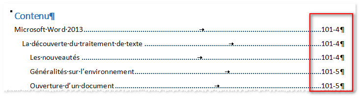 On pense bien souvent qu'il suffit d'ajouter ce numéro à la pagination. Il n'en est rien. La pagination seule s'affiche dans la table des matières.