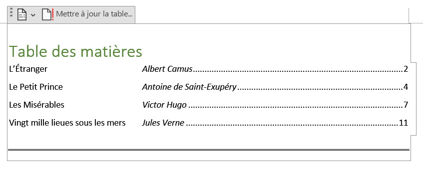En cas de modifications du document, il suffira de mettre à jour votre table comme vous le faites normalement.