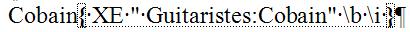 - Vous pouvez ajouter un attribut gras ou italique pour les numéros de page qui s'afficheront dans l'index, en cochant l'une de ces options (ou les deux) dans la rubrique Format des numéros de page de la boîte de dialogue Marquer les entrées d'index. Vous remarquerez dans ce cas que les commutateurs b et/ou i s'ajoutent au champ.