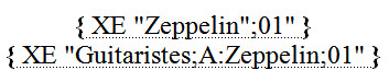 - Dans la zone de saisie Entrée de la boîte de dialogue Marquer les entrées d'index, tapez le nom de l'entrée principale : "Guitaristes" dans mon exemple.
