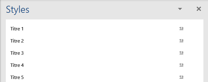 Je peux donc en conclure que les styles utilisés ne sont pas les bons styles de titre.