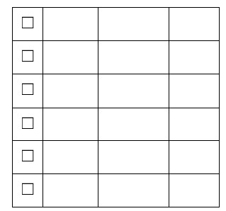 La macro suivante va insérer une case à cocher dans toutes les cellules de la première colonne du premier tableau.