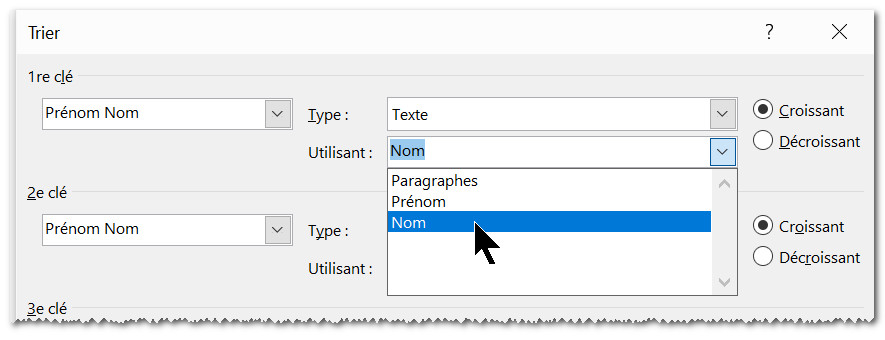 Le tri d'un tableau dans Word, avec l'utilisation de plusieurs critères se fait de la même manière que dans Excel.